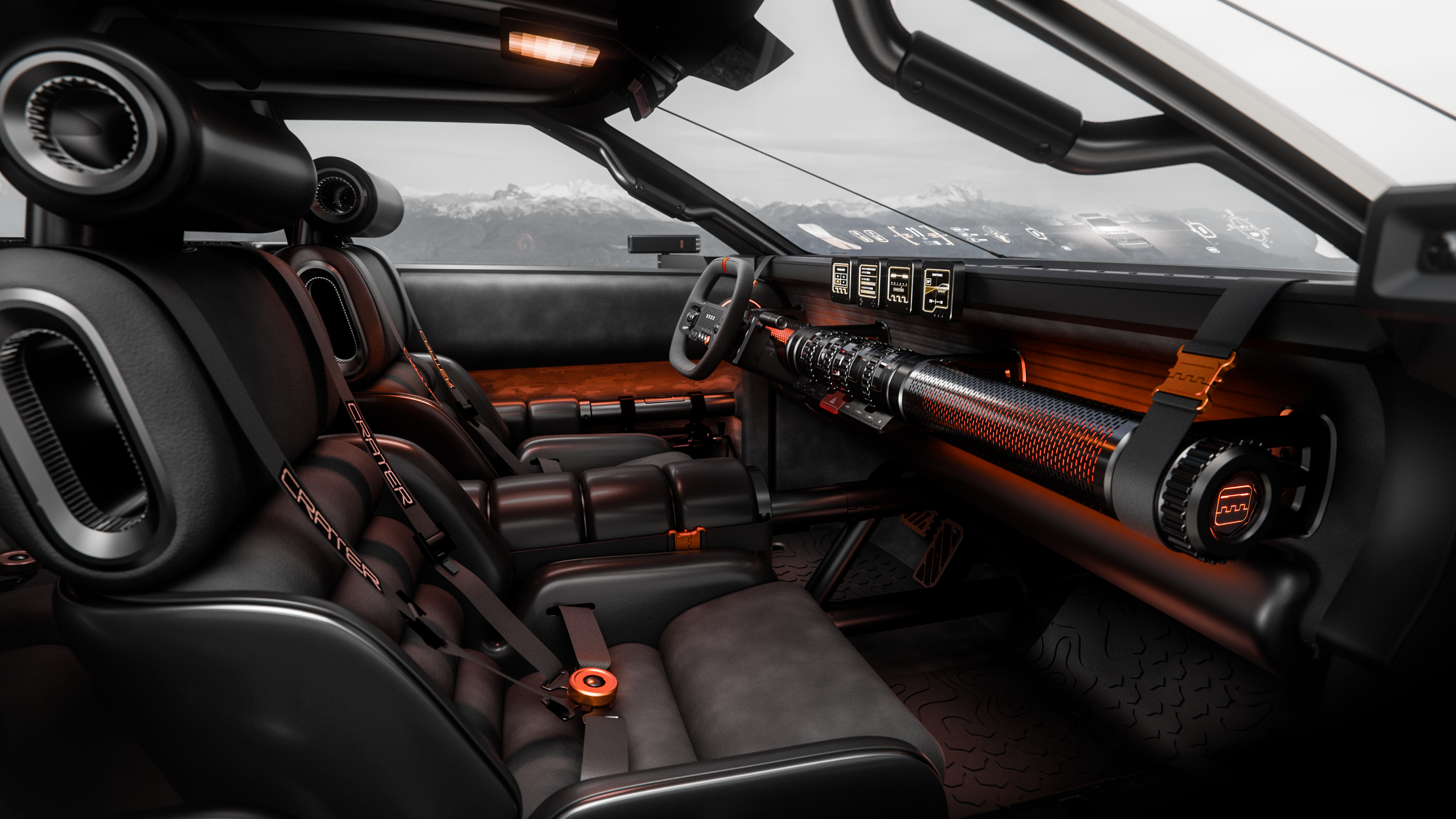 Ono što CRATER čini posebnim su skriveni detalji koji unose dozu zabave i praktičnosti. Primjerice, kuke za izvlačenje vozila mogu poslužiti kao otvarači za boce, dok se kamere na bočnim retrovizorima mogu odvojiti i koristiti kao ručne svjetiljke ili kamere za snimanje avantura izvan vozila. Cjelokupni dojam zaokružuje “Dune Gold Matte” boja inspirirana kalifornijskim pejzažima, uz vibrantne narančaste akcente koji unose energiju u ovaj beskompromisni off-road stroj.